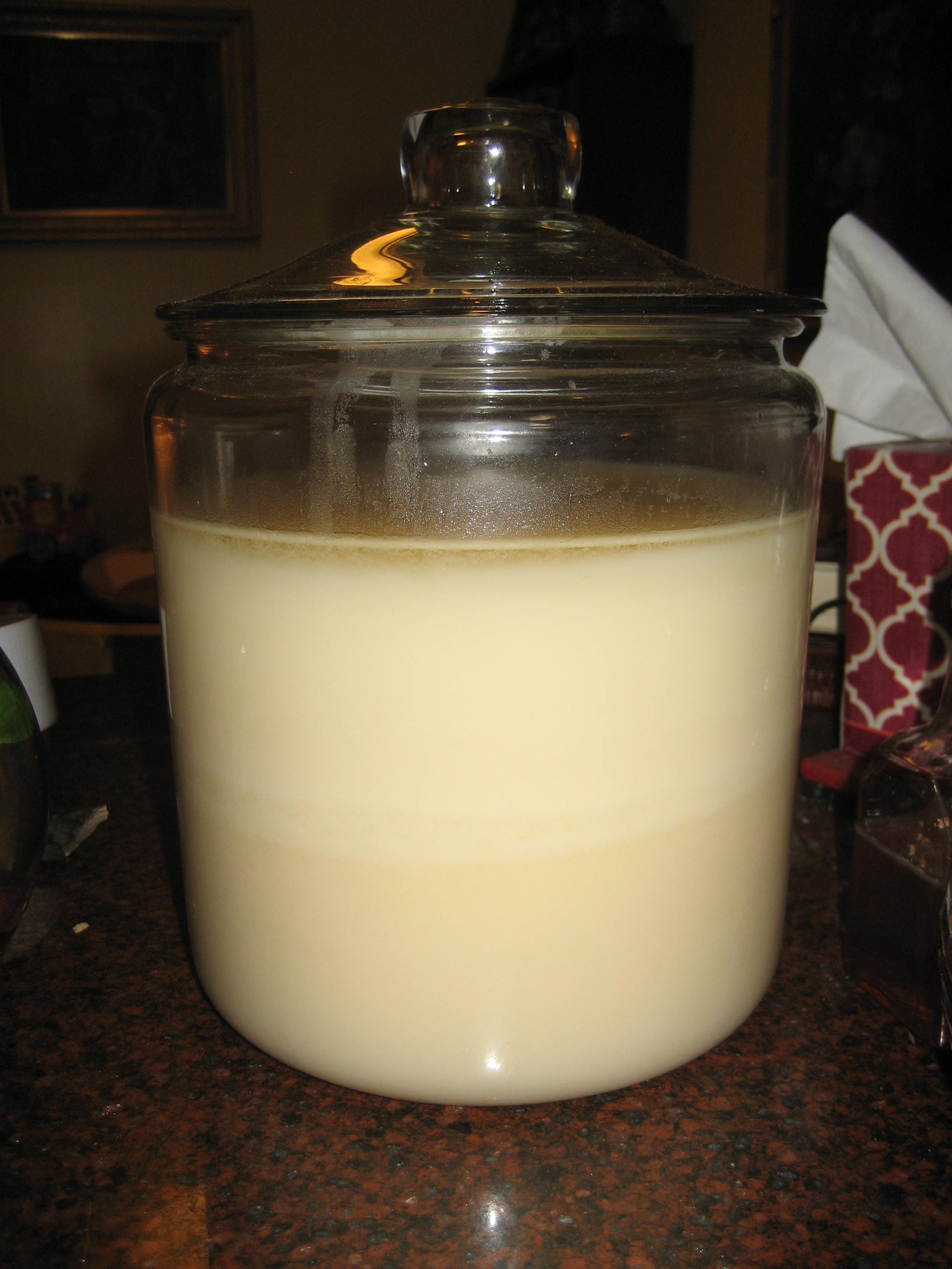 I got 10 pounds of pork fat from the farm we buy meat from last month with the intent of rendering my own lard. When I ordered I had an idea of what I would need to do, but knew I would need to look up the directions again before I proceeded. It was surprisingly easy. It took me three days to do all 10 lbs. as my crock pot is small, but I now have 1 gallon of lard (pictured) on my counter. I’d say it was well worth the $7 I paid for the fat. All I did was cube the fat, toss it in the crock pot with about a cup of water. Cover. Turn on low. Cook either overnight or all day stirring occasionally if possible. Strain out the leftover fat pieces with a cheesecloth and collander, pour in a heat safe container (mason jar, casserole dish, crock, etc.), cool and chill in the fridge. All done and not much to it.