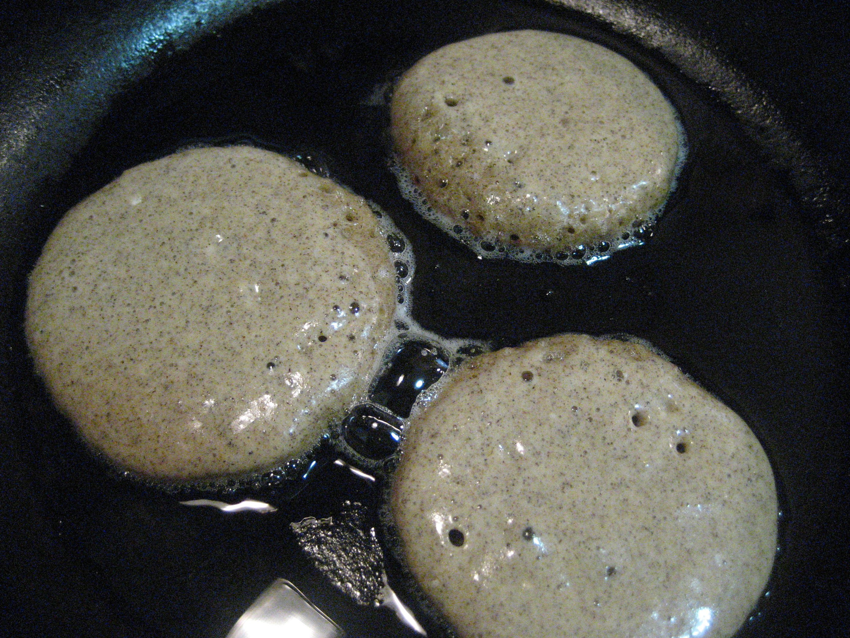 These pancakes are light but hearty. If you want a more pronounced sourdough flavor then mix up the first four ingredients (eggs, oil, milk and starter) with one cup of flour and let it sit overnight. Then add the remaining flour, salt, cinnamon and baking soda in the morning and fry them up.