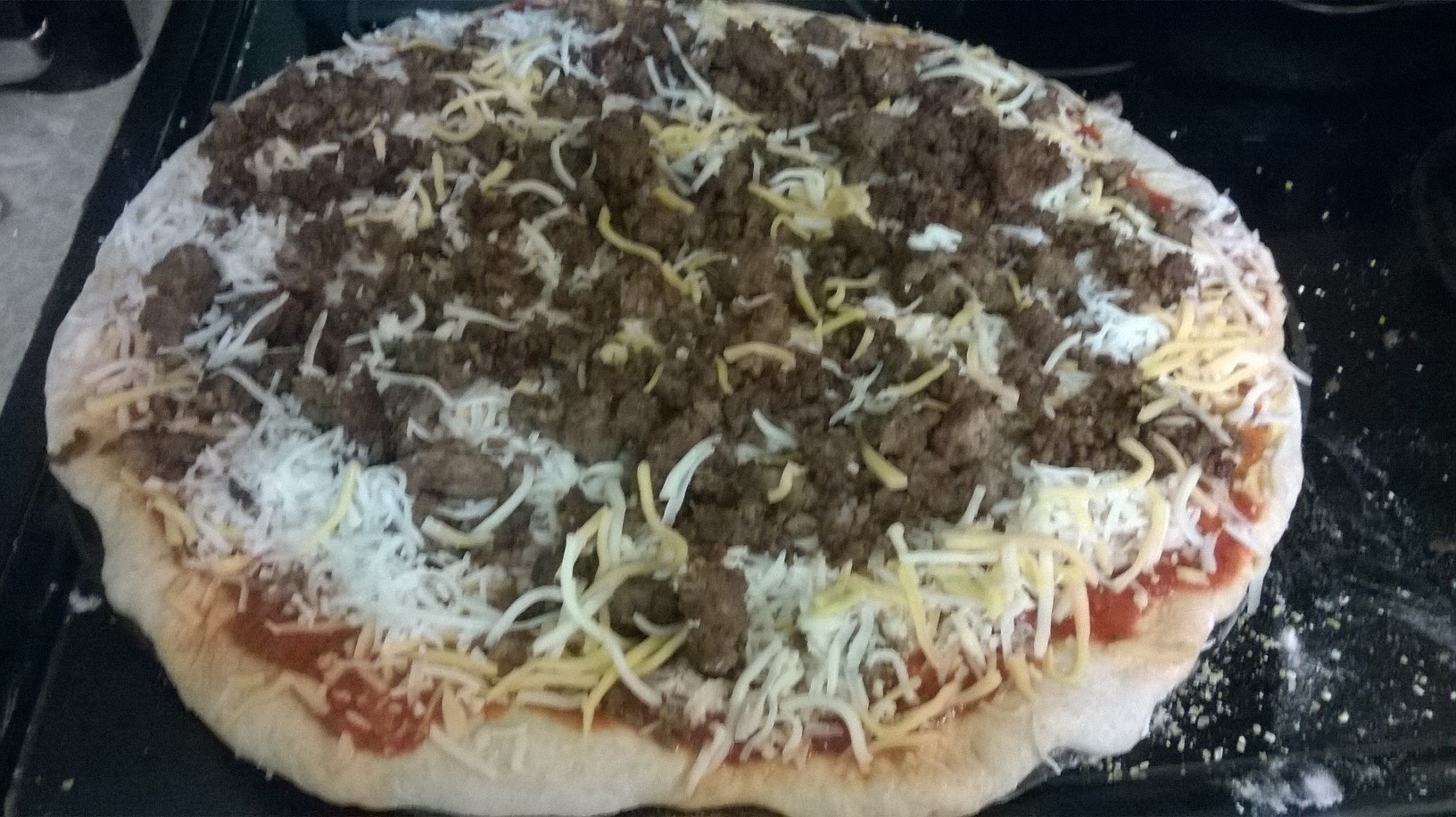 I posted a 5 minute bread recipe last week. I just used the same recipe to make pizza dough for dinner last night. It’s so fast and easy. I simply mixed yeast and salt with water. Added flour, let it rise once, and rolled it out. (If the dough is sticky when rolling add more flour as needed.) I put it on cookie sheet/baking stone, decorated with pizza fixins and cooked at 420 for 18 minutes.If you find the dough hard to roll out let it sit for 5 or 10 minutes and try again.