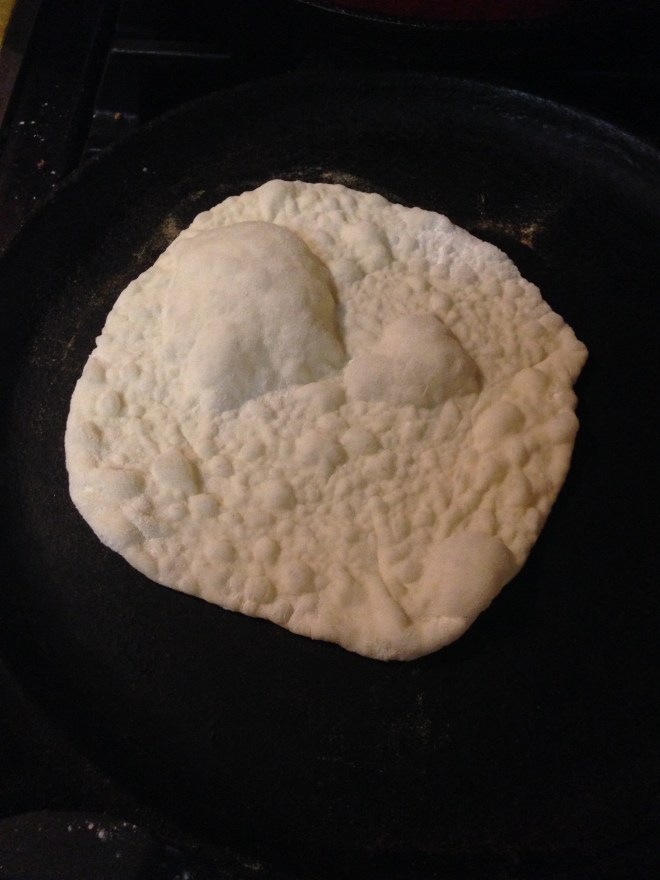 Prepare a floured board for rolling out the balls and heat a cast iron skillet or griddle hot until water sizzles on the surface.