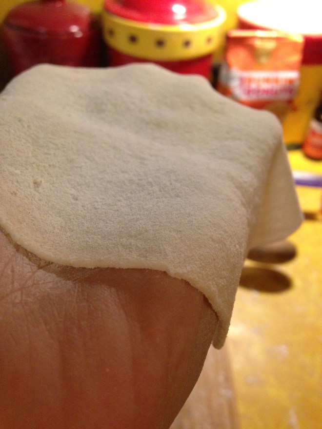 Roll out the balls very thin using only as much flour as needed to keep them from sticking.