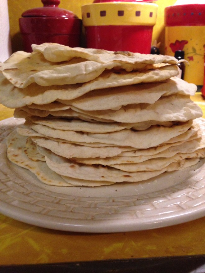 This recipe made me about 30 tortillas. They are going to make a great bread substitute. I think I’m going to try using less flour when I roll them out next time as they ended up being a little dry. But they tasted great as soft tacos for dinner and were light and pliable. And I have enough for dinner tomorrow. Yay!