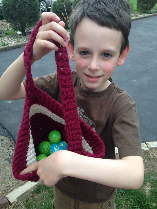 I made my oldest two crocheted Easter baskets six years ago when they were ages two and three. I finally got around to catching up to the other two. The little girls got some crocheted Easter baskets this year. We had lots of fun hunting eggs, spending the day with family and celebrating the joy of Easter.