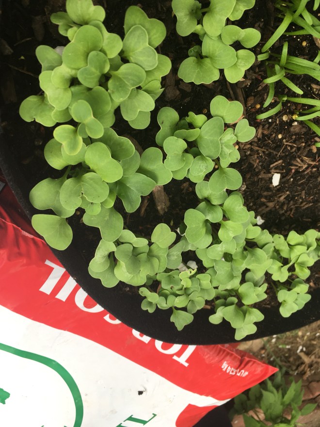 Radishes and spinach seedlings.