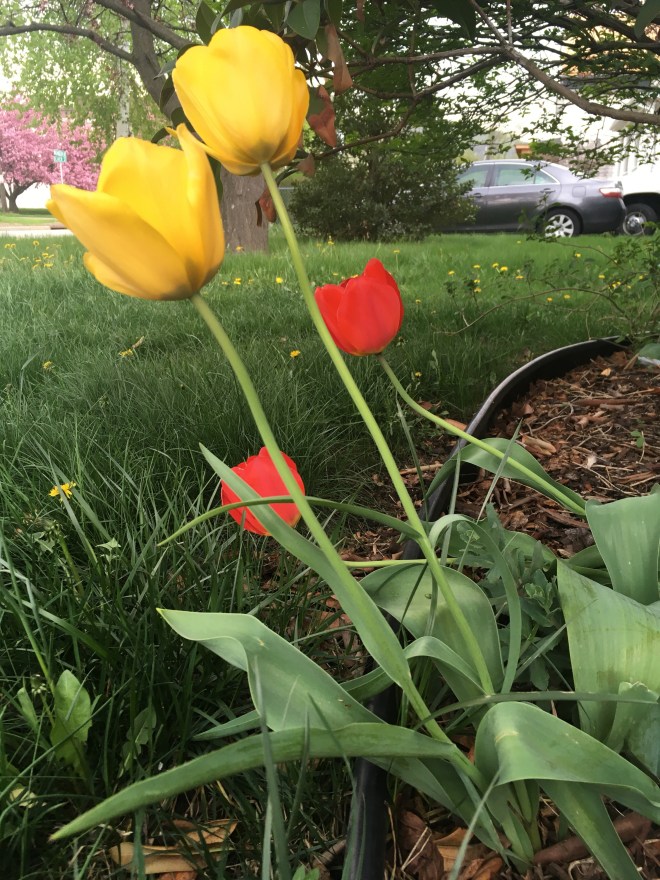Yellow and red Tulips.
