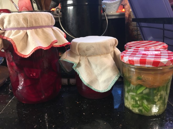 I had fun with ferments in my kitchen today. Two old favorites – Beets with clove and cardamom, and Jalepeno, Garlic and Onion Relish. And new to me, making my own Apple Cider Vinegar using apple scraps. You can read the fermenting instructions by visiting Maggie’s Cellar. I find ferments to be so fascinating. I hope you try it.