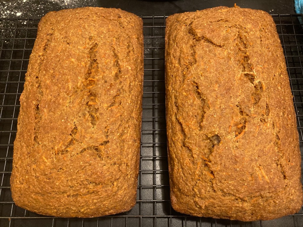 Mix all dry ingredients. Mix all wet ingredients in a separate bowl. Add the wet to the dry. Mix well. Pour into greased bread pan. Bake at 350 for 50-55 minutes or until the center tests clean.