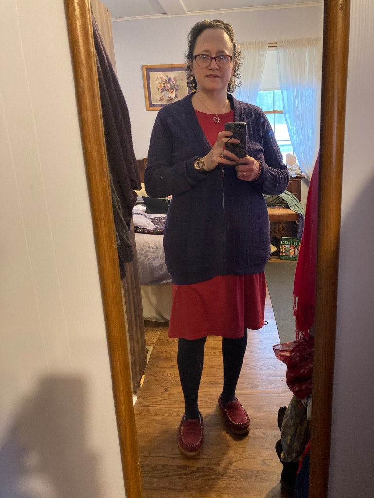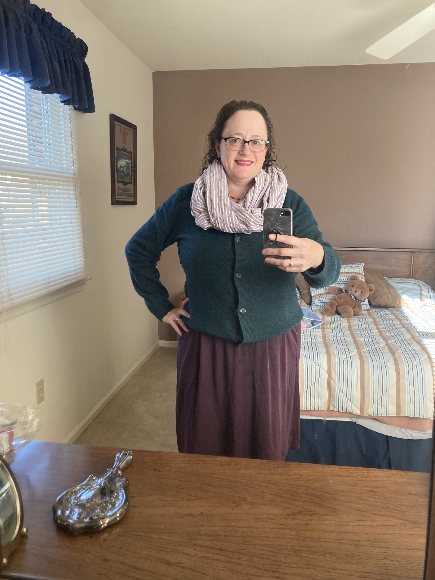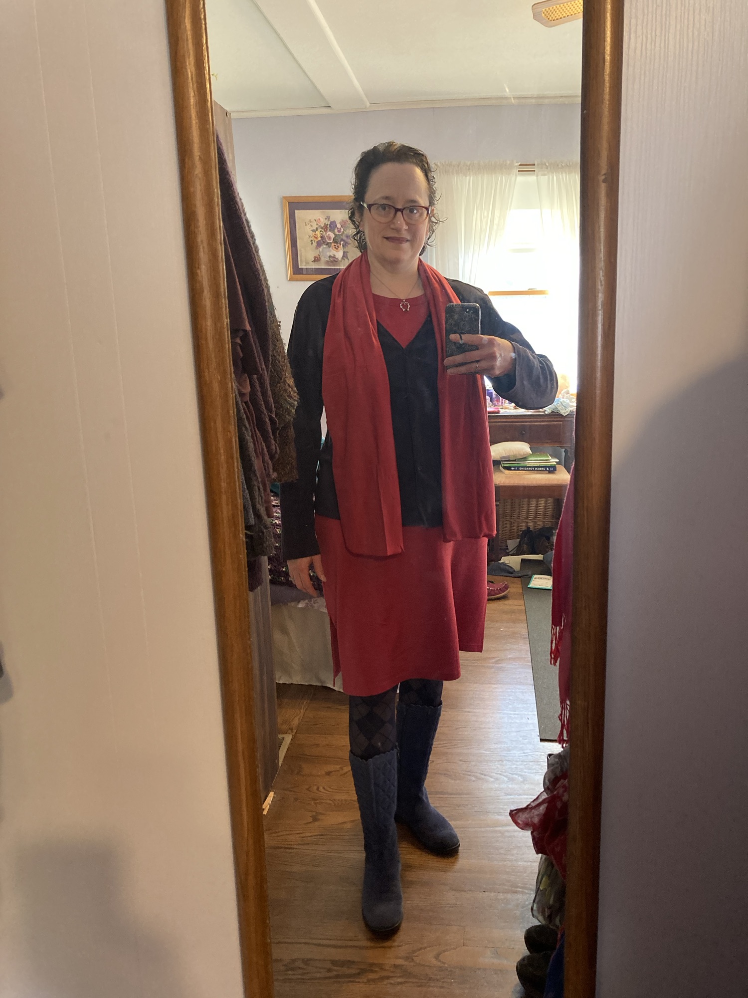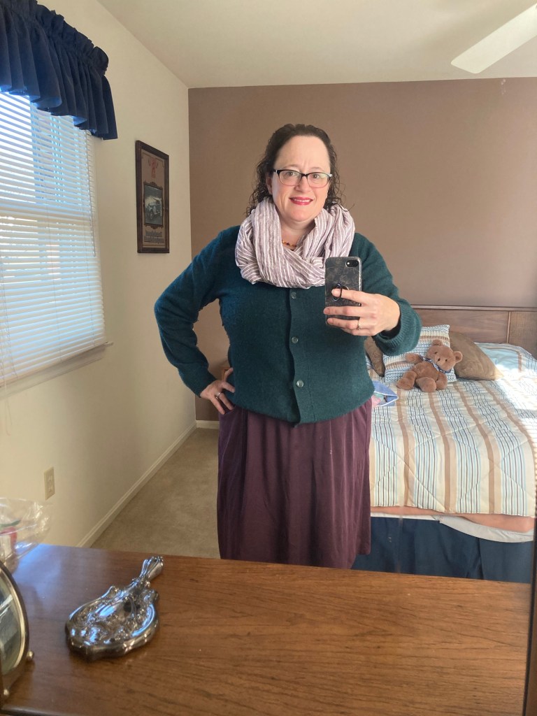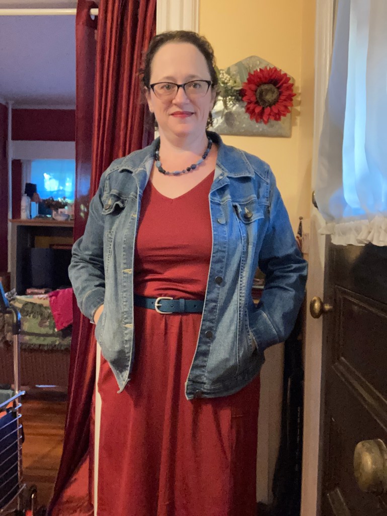 The challenge peaked my interest. Not necessarily for the gift card, but for the challenge of it. But, I set it aside. I’d never spent that much money on a piece of clothing before. I didn’t even pay that much for my wedding dress off eBay. But, I kept thinking about it and coming back to it in my mind. So, I decided to try it. I ordered a Garnet Summer dress. I chose it for the versatility, midi length, and cut. This particular dress is reversible, can be worn alone as a tank style, or layered for cold weather. The midi length was important to me as I don’t wear short dresses. I wanted something below the knee but didn’t want something so long that I couldn’t also wear it in summer. I wore this dress for 100-days through the fall and winter and I had such a good time! Below are a photos of some of my favorite outfits. Maybe you can get some styling ideas from some of my photos below.