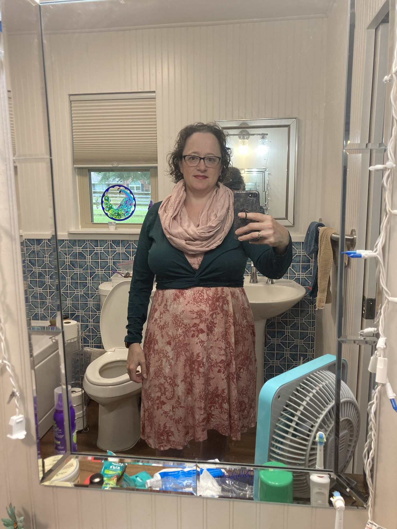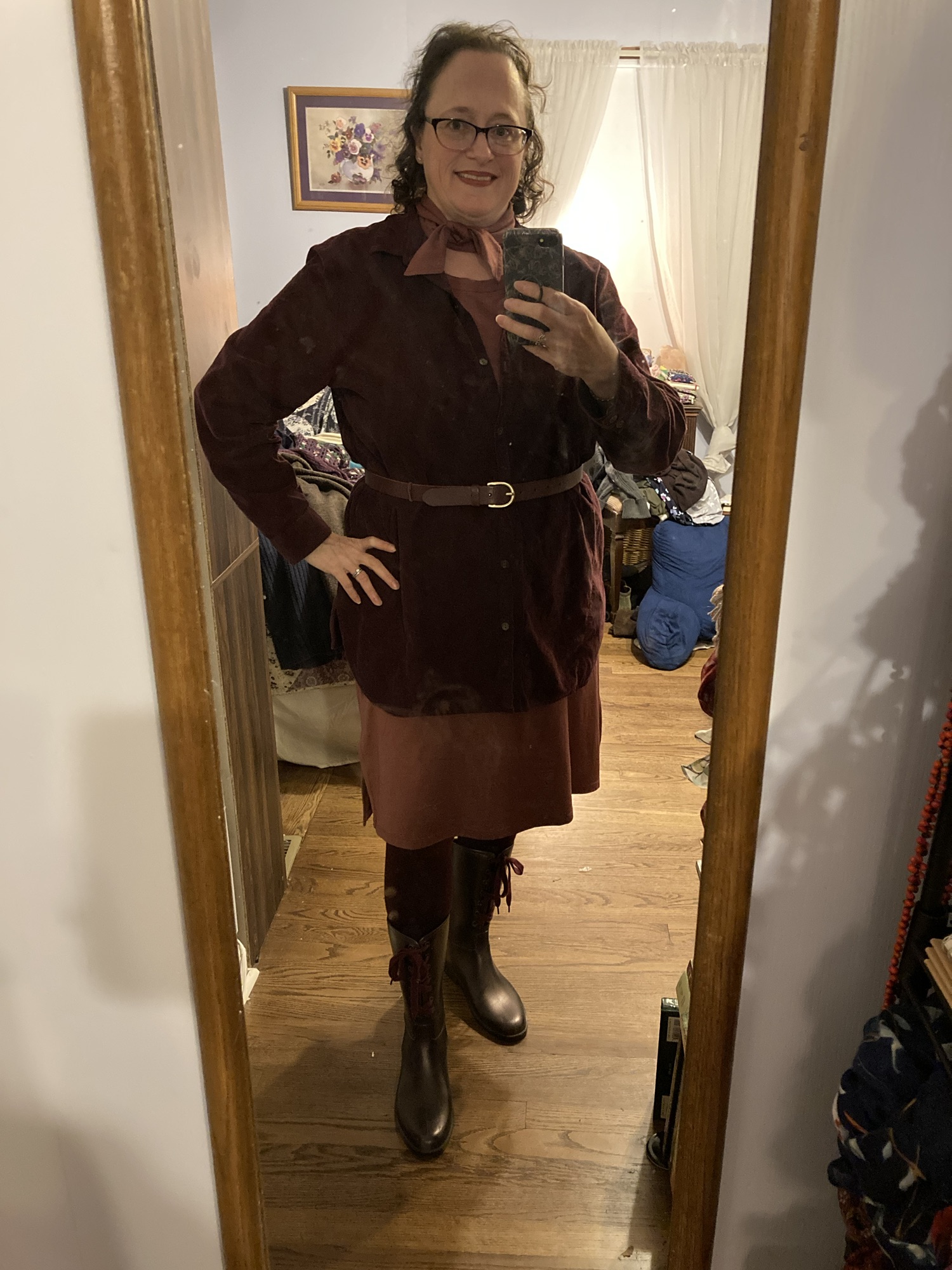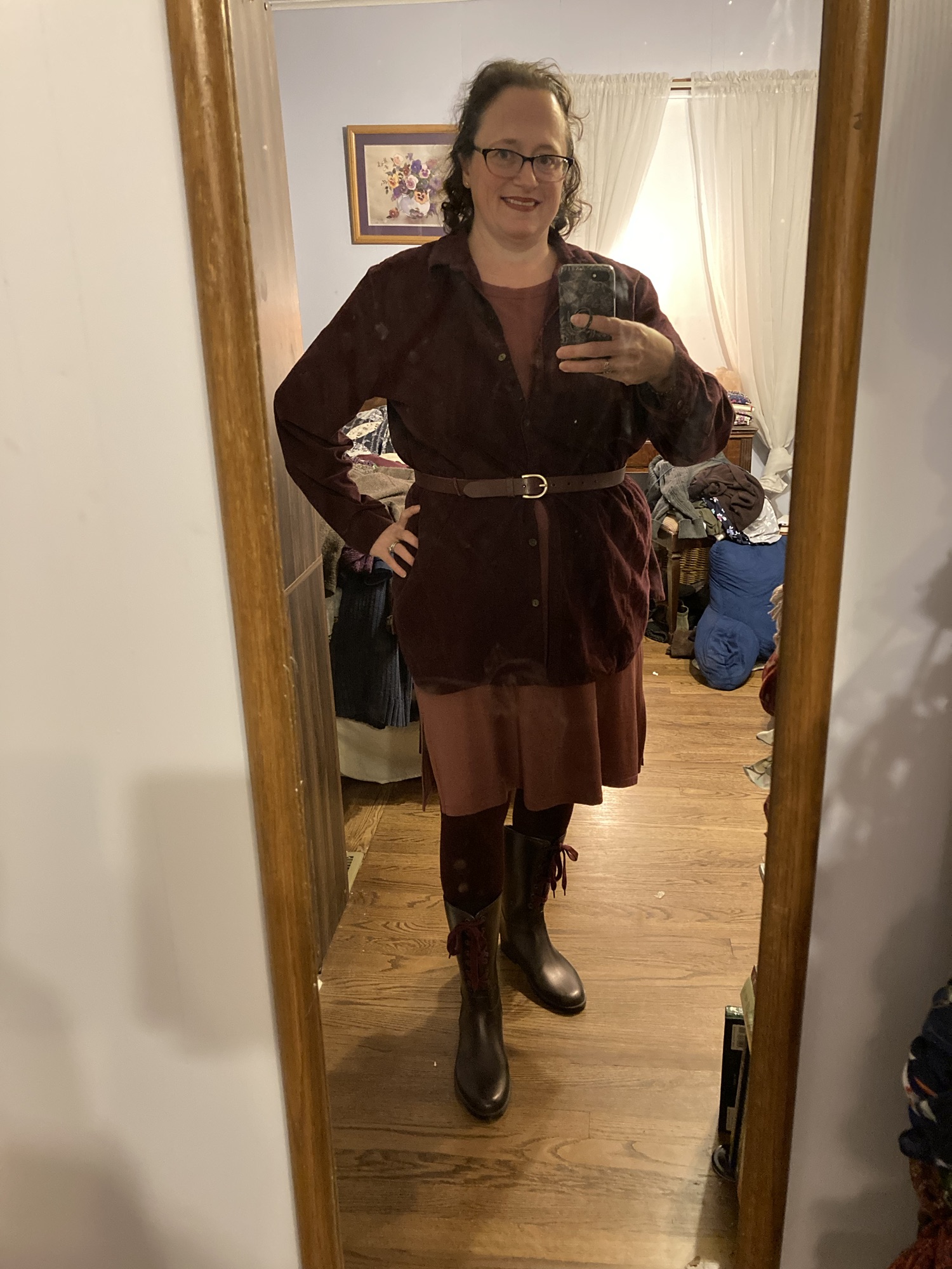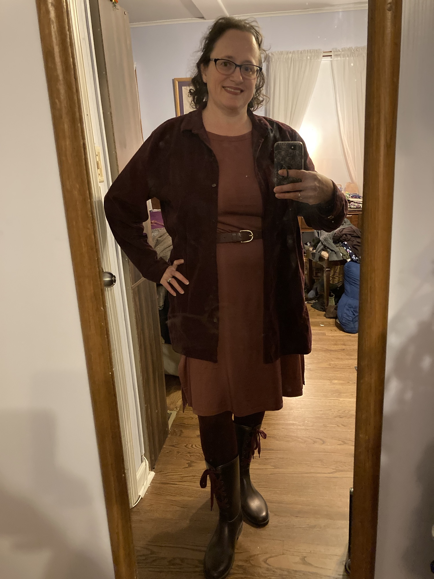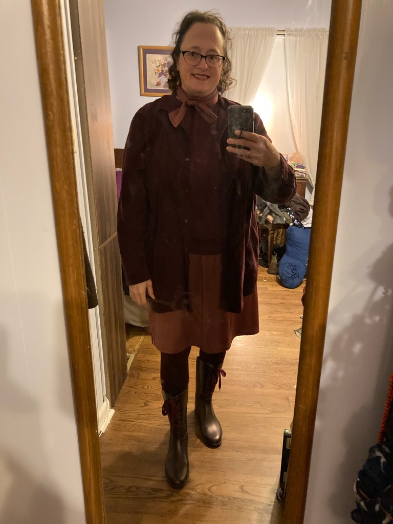 The challenge peaked my interest. Not necessarily for the gift card, but for the challenge of it. But, I set it aside. I’d never spent that much money on a piece of clothing before. I didn’t even pay that much for my wedding dress off eBay. But, I kept thinking about it and coming back to it in my mind. So, I decided to try it. I ordered a Garnet Summer dress. I chose it for the versatility, midi length, and cut. This particular dress is reversible, can be worn alone as a tank style, or layered for cold weather. The midi length was important to me as I don’t wear short dresses. I wanted something below the knee but didn’t want something so long that I couldn’t also wear it in summer. I wore this dress for 100-days through the fall and winter and I had such a good time! Below are a photos of some of my favorite outfits. Maybe you can get some styling ideas from some of my photos below.