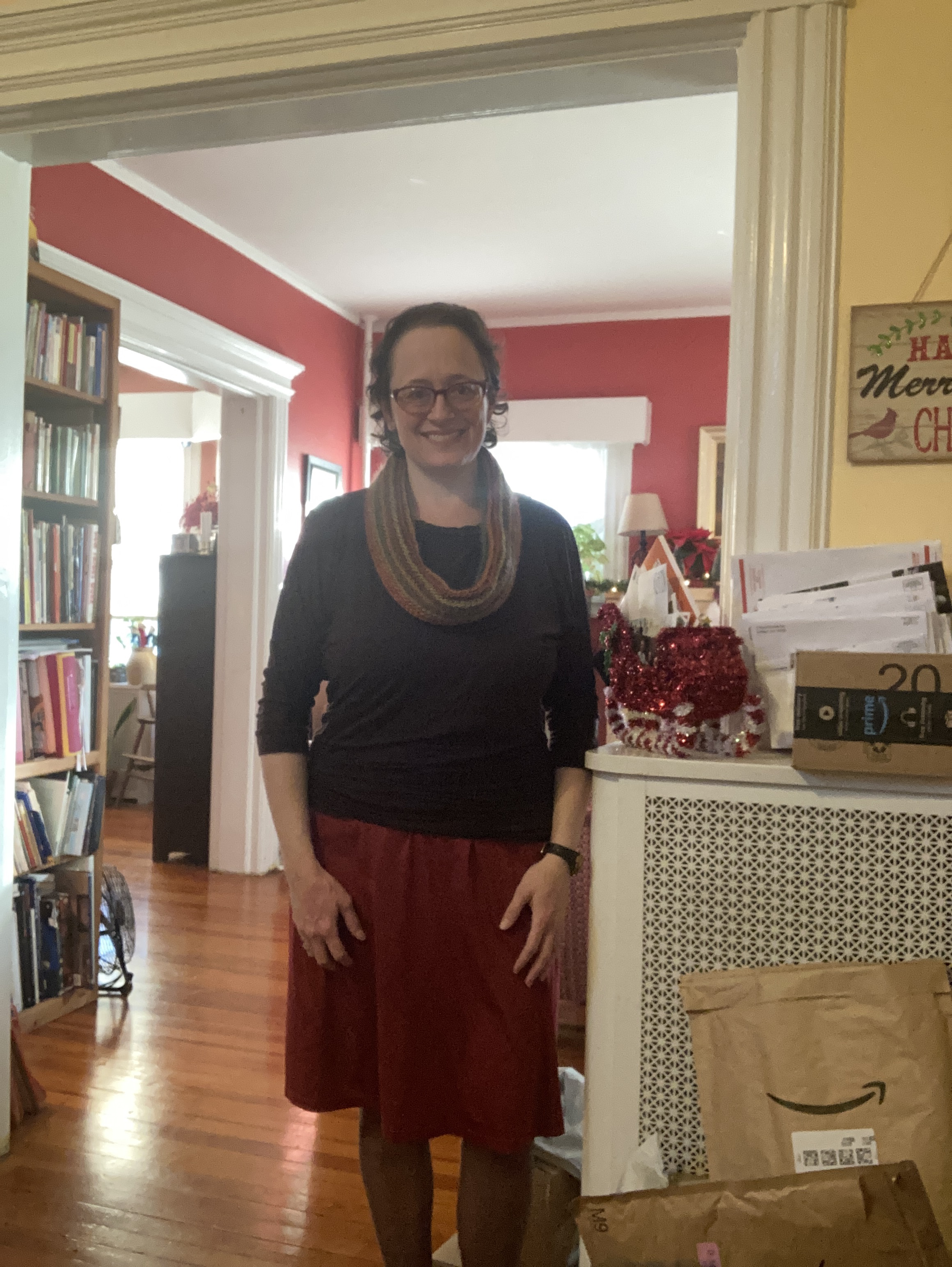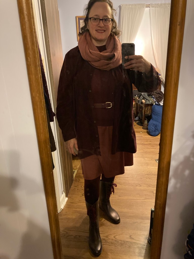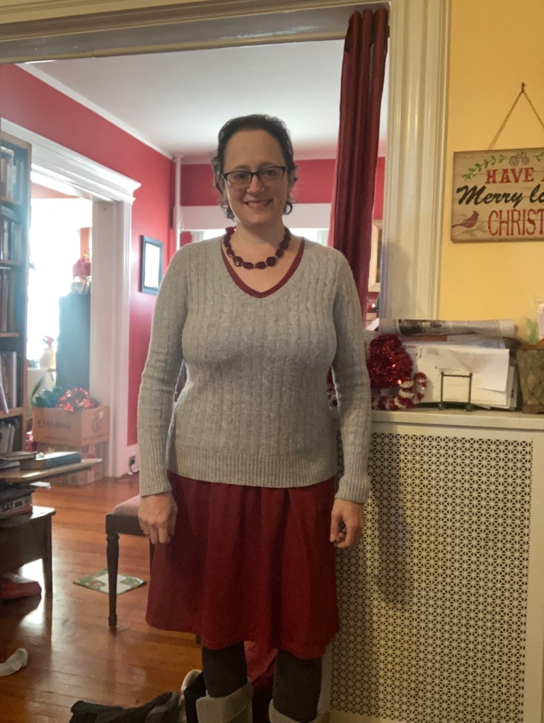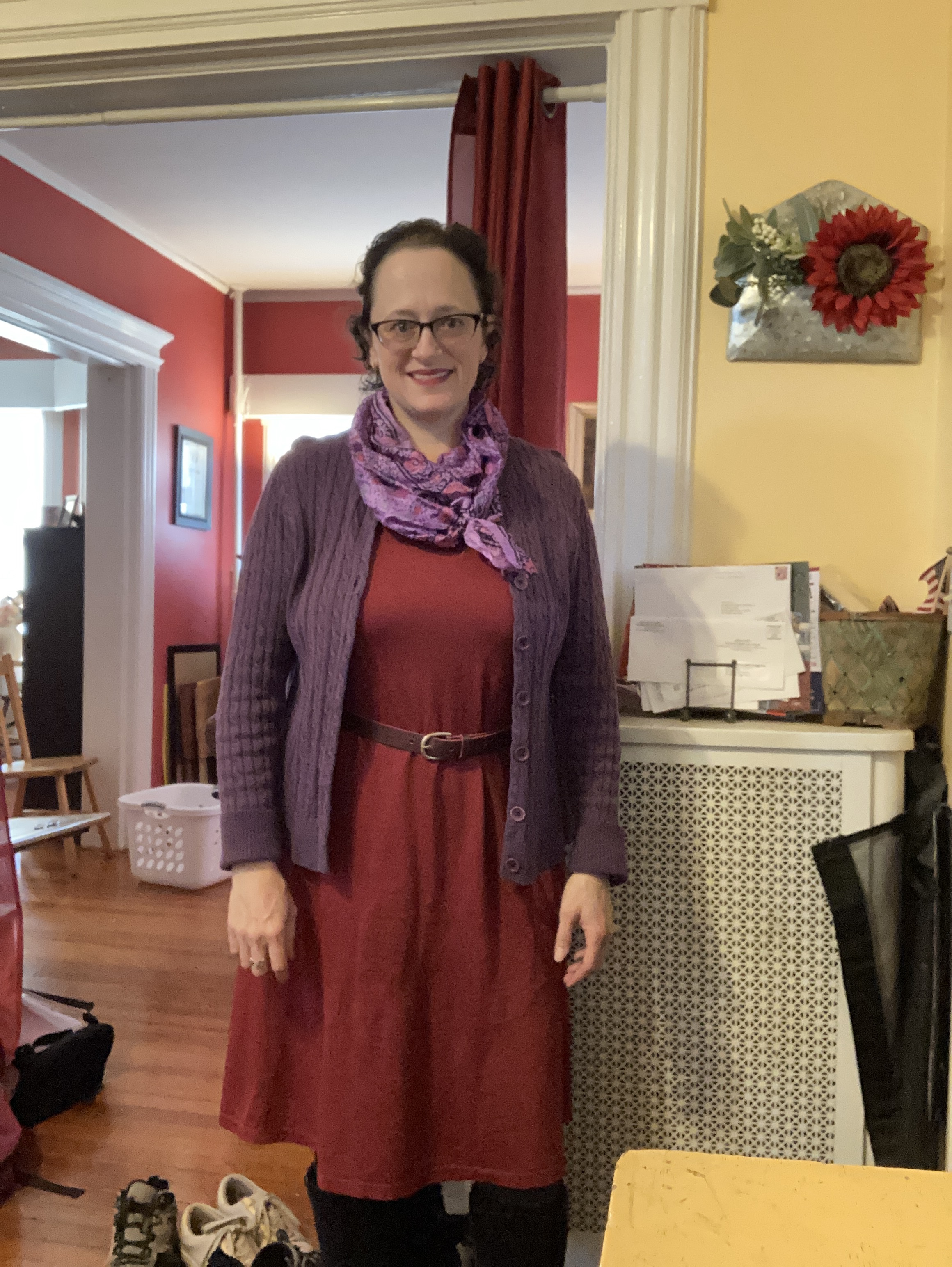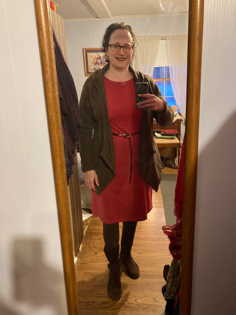 I learned that I can create a myriad of outfits with what I already owned. I so enjoyed being forced to be creative and put new I’m outfits together. I took it as a personal challenge and actually never repeated an exact outfit for the whole 100-days. And my laundry dwindled to practically nothing. Wool is naturally antibacterial and so rarely needs to be washed just from regular wear. I spot cleaned it with dish soap for food spills or small soiled areas but in general, I probably only washed the dress ever 2-3 weeks. Granted I did my challenge in the fall/winter so I’m sure I would have washed it a little more frequently had I done a challenge in the summer, but the only laundry I did the entire challenge period was basically socks and underwear. The fact that it needs to be washed so infrequently means that it was great for traveling. I wore it to my in-laws for Thanksgiving which means I had a light suitcase for our holiday travels. I was able to mix up my outfits enough with just a few other pieces of clothing that my very observant mother-in-law never noticed that I was wearing the same dress over our visits at Thanksgiving or Christmas.