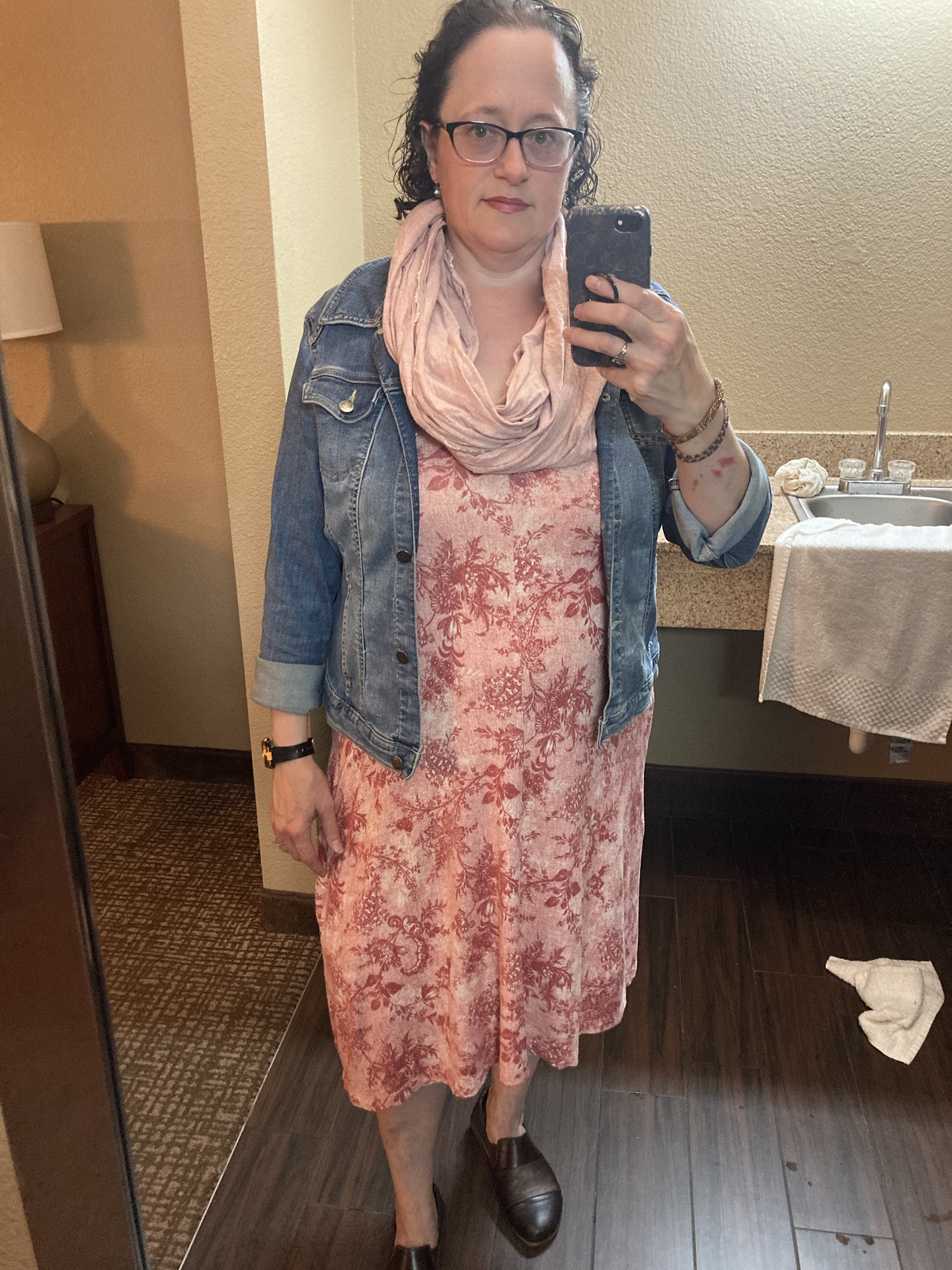 We traveled over 5,000 miles this summer. Of course two of my wool dresses came with me. We traveled from the Northeast to Texas to the mountains of Colorado and then to Pennsylvania. My dresses travelled well, didn’t need to be washed the entire trip, and took me from 100 degree temperatures to mountain weather comfortably. This trip, I found one of my new favorite scarves to particularly useful not just from a fashion standpoint, but for comfort as well. Broadstreet Clothing is an all American made clothing brand that focuses on high-quality fabrics that wear well, are washable, and durable. I have two of their scarves and they were so useful to make my outfit feel put together, give me an extra layer of sun protection, add a layer when the weather was chilly, and give me something to snuggle up with for those long stretches in the car. I even used it to block the sun in my eyes so I could nap while my husband took a turn driving. It’s one of my favorite pieces now and even though I don’t wear pastels, I find these scarves to be surprisingly neutral in my wardrobe of jewel tones.