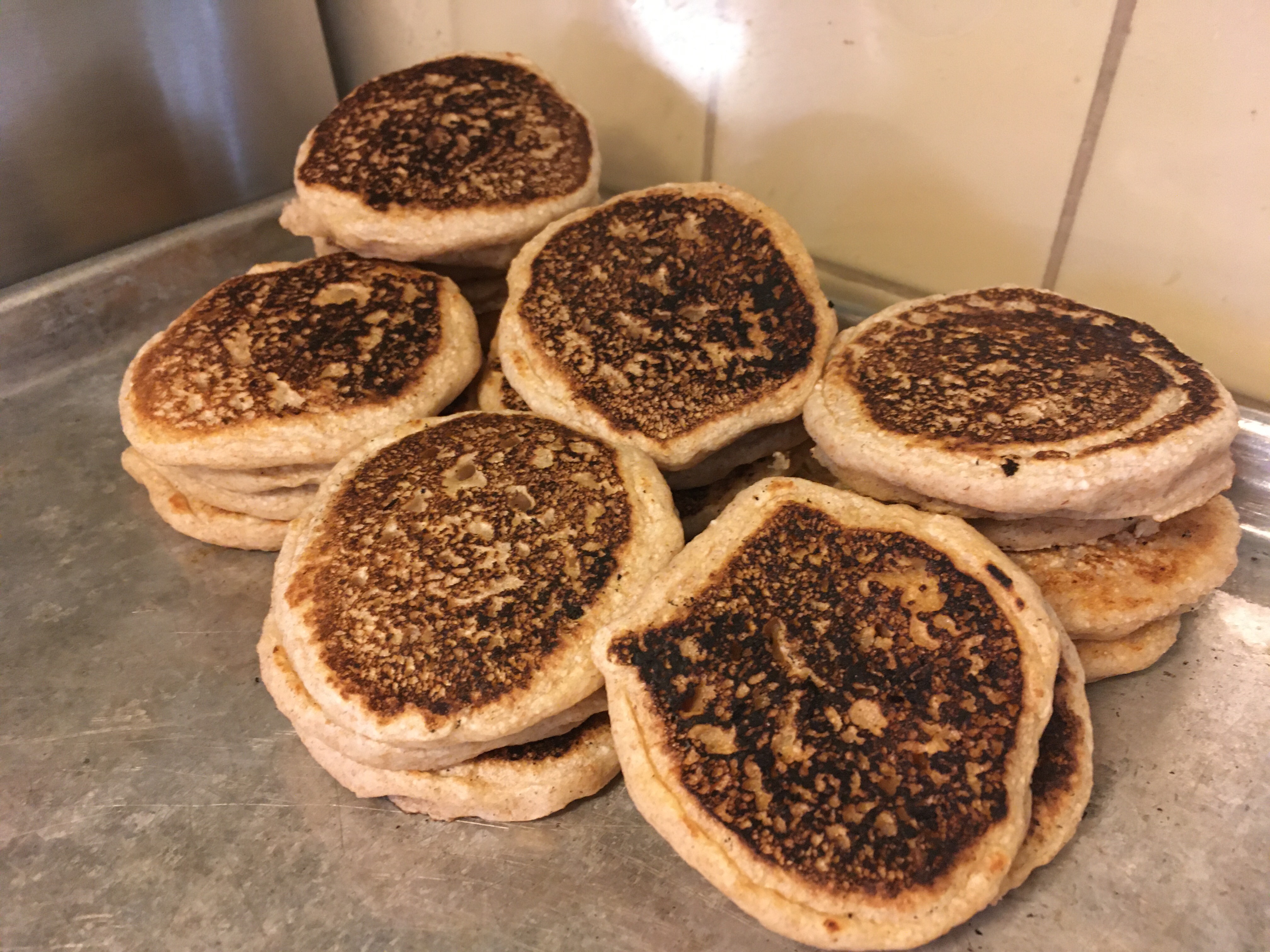 Peel and chop your apple, heat skillet over medium heat and add your oil and apple. Sauté for a couple of minutes or so, and add the salt, cinnamon, and nutmeg until all the apple pieces are coated. Next add the honey and vanilla, stir quickly so that the honey doesn’t burn, and gradually pour in some of the water to make a sauce. Don’t add all of it unless you need it. Add the crumbled bread and stir until coated and heated through. Serve with ice cream or heavy cream if you can have it. Makes 2-3 servings.