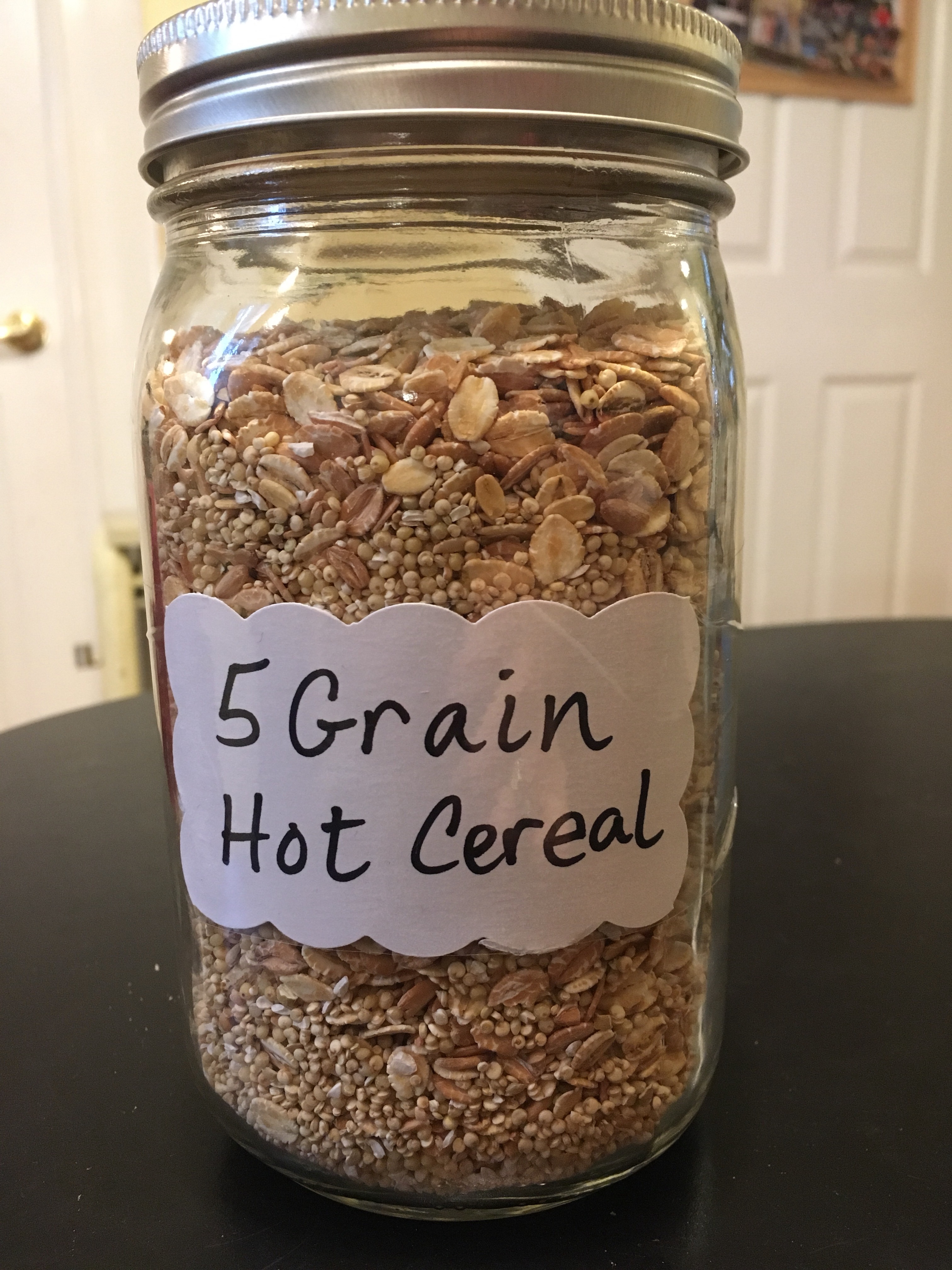 Mix the grains together and store in a quart size jar.