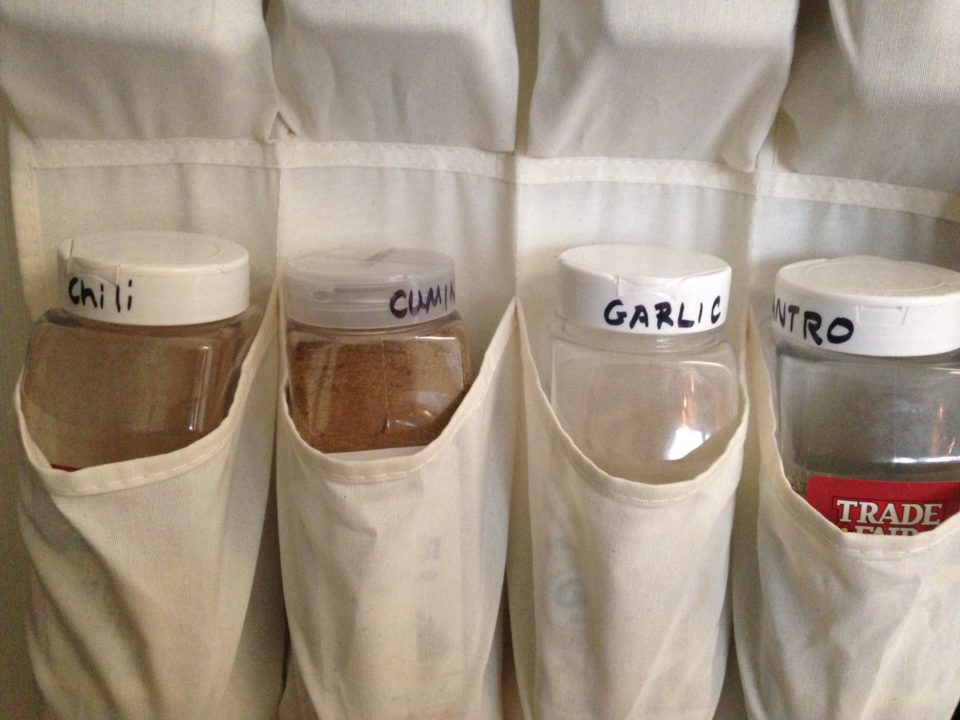 I labeled all the lids of my spice containers with a permanent marker and filled up all those pockets.