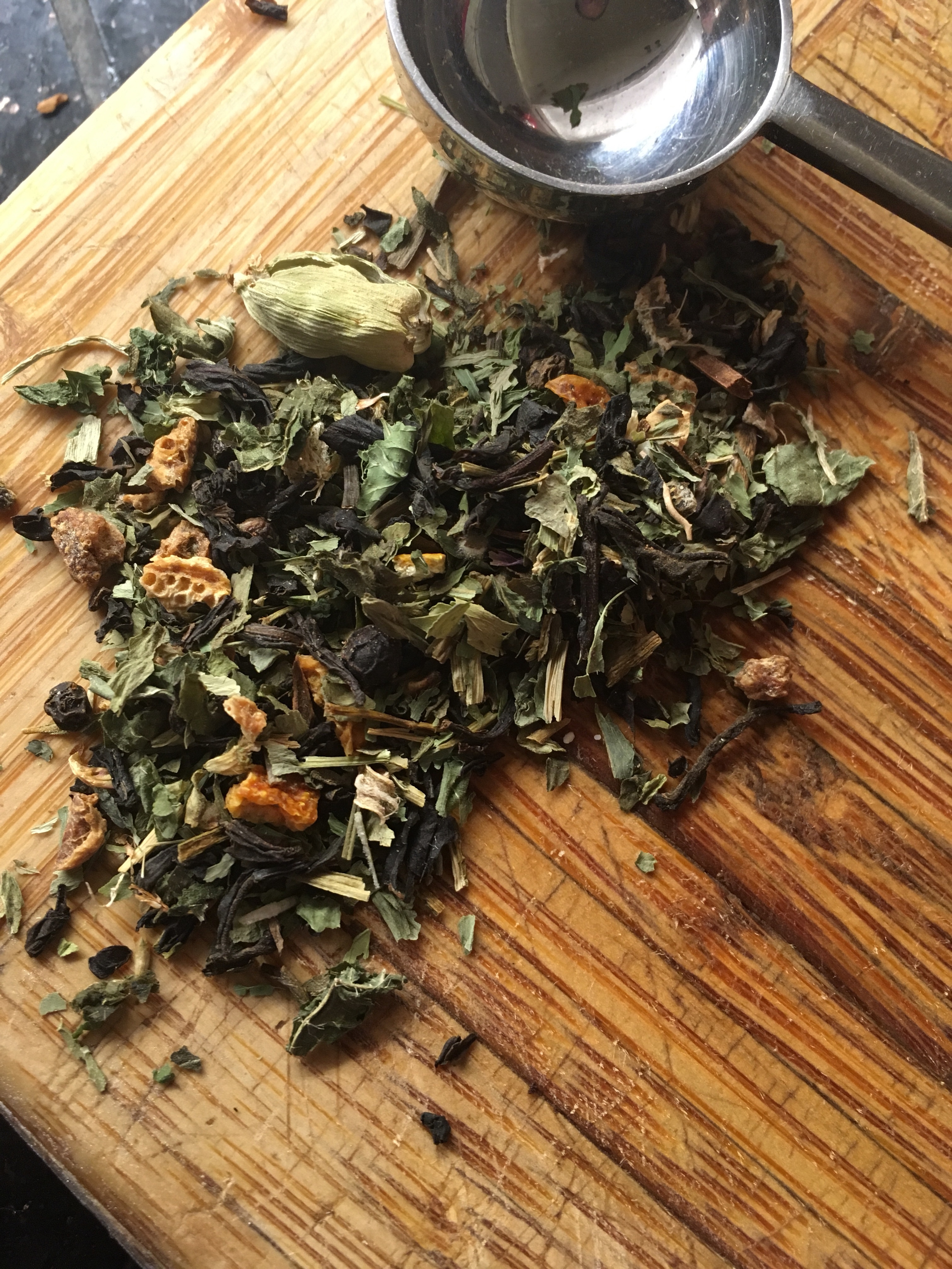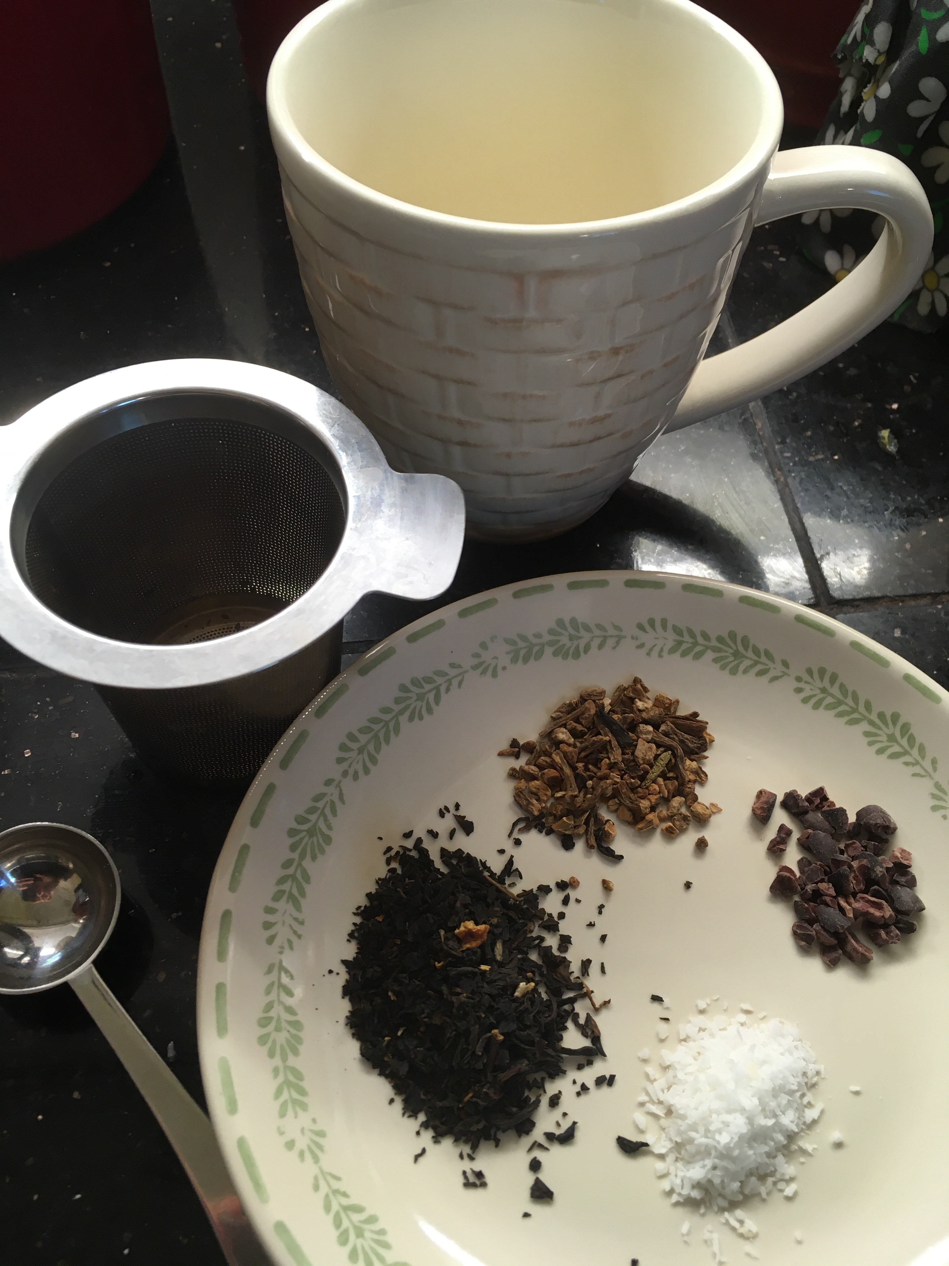 So, I’m picky about my teas. I’ve experimented for months to get a combination that I like. Too many herbs – too weak. Too much black tea – too much caffeine. Too many cloves – too strong. Too much black pepper – too spicy. Too much dandelion – too bitter.