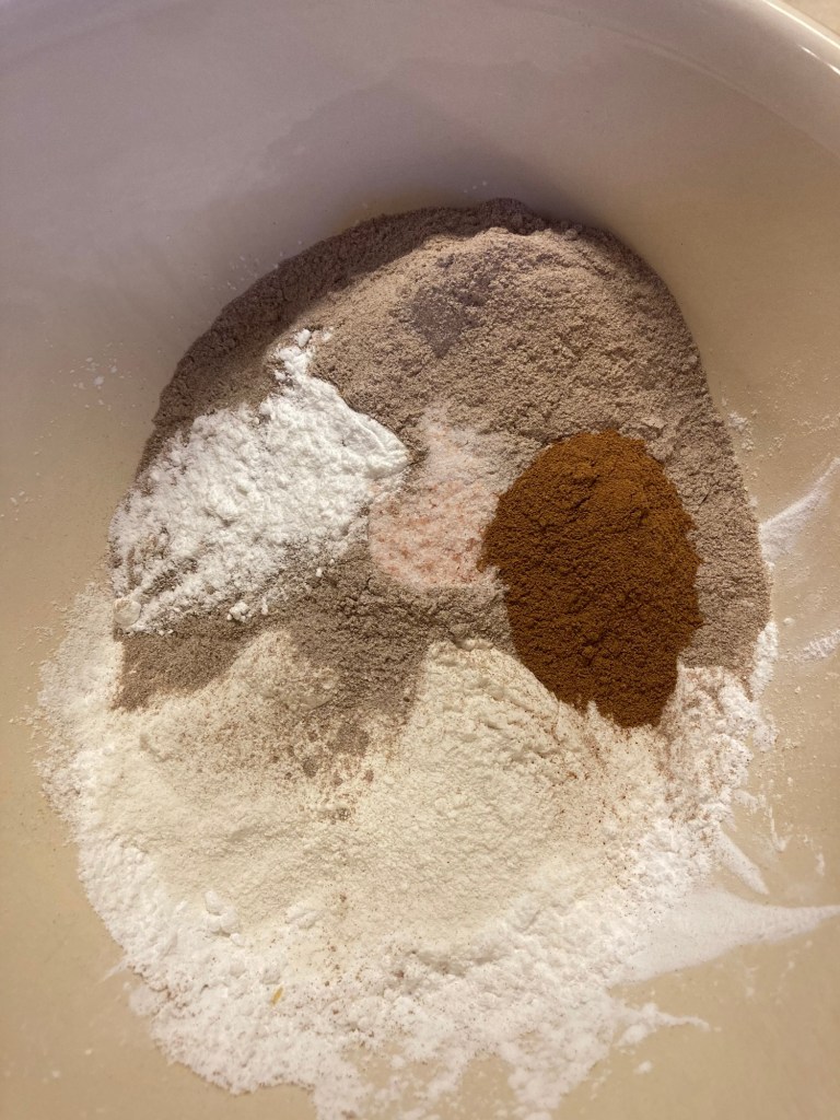 This is the perfect fall recipe. Suggested substitutions are listed in parentheses but you can substitute any flour if a similar type (whole grain for whole grain, starch for starch, legume for legume, nut for nut) with good results. My recommendations are just suggestions. Use the flours that your starter is made from and that you tolerate best.