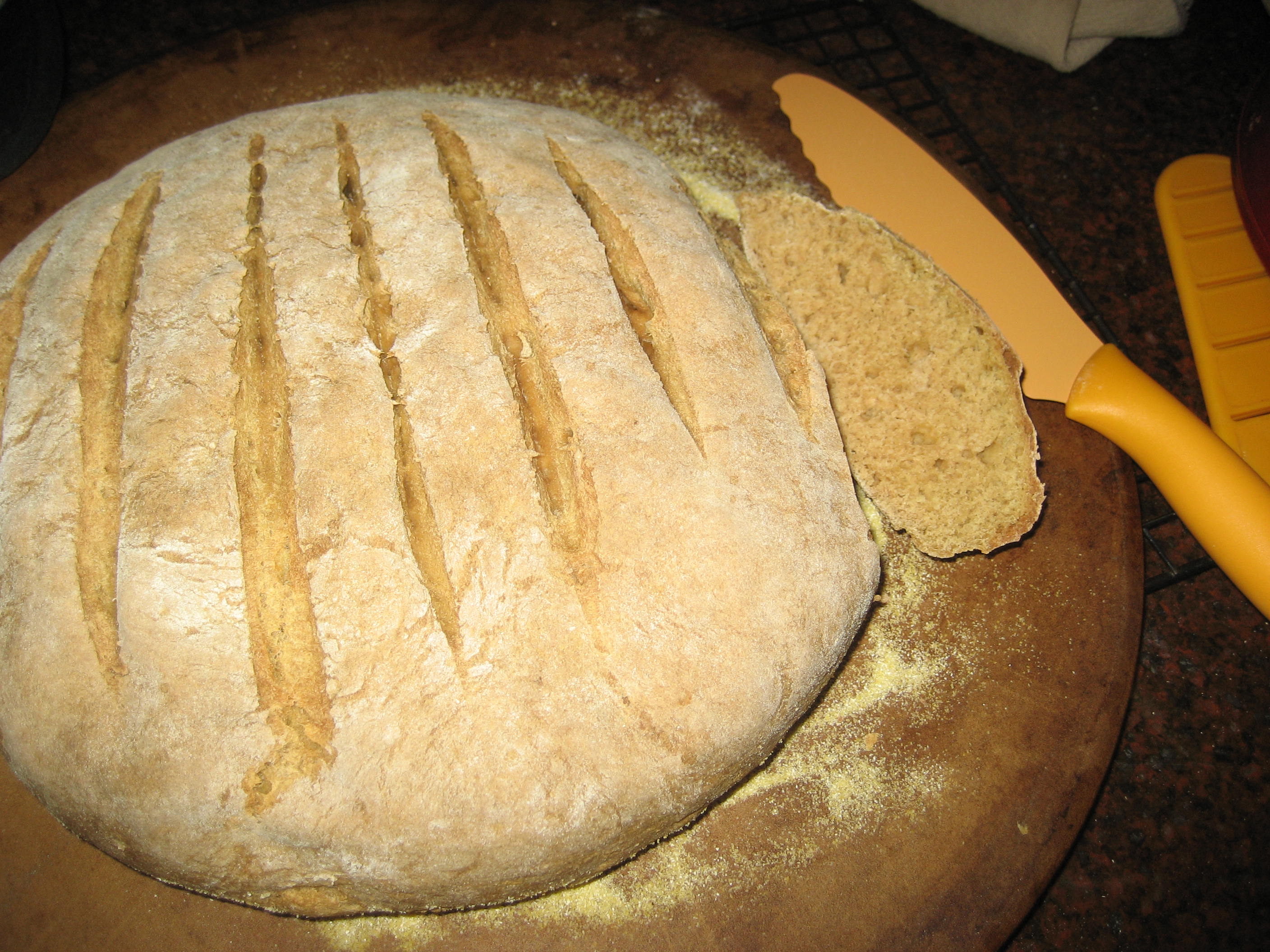 AArtisian Breadrtisan Bread in Five Minutes a Day makes breadmaking easy. And it’s true to it’s word. You can really make traditional homemade bread in the time that it takes to stir the ingredients in the bowl. It works on a similar principle as a sourdough starter would, though with much more ease. Basically you make a large amount of dough that is wetter than typical bread dough, let it rise, refridgerate overnight (optional but better). Then the following day you remove the amount you want to cook. Let it rise. And bake it. It’s simple and ready to go. You can keep the dough in the fridge in a loosely lidded container for up to a week. Just remove the amount you need and you can have fresh bread every day if you want to.