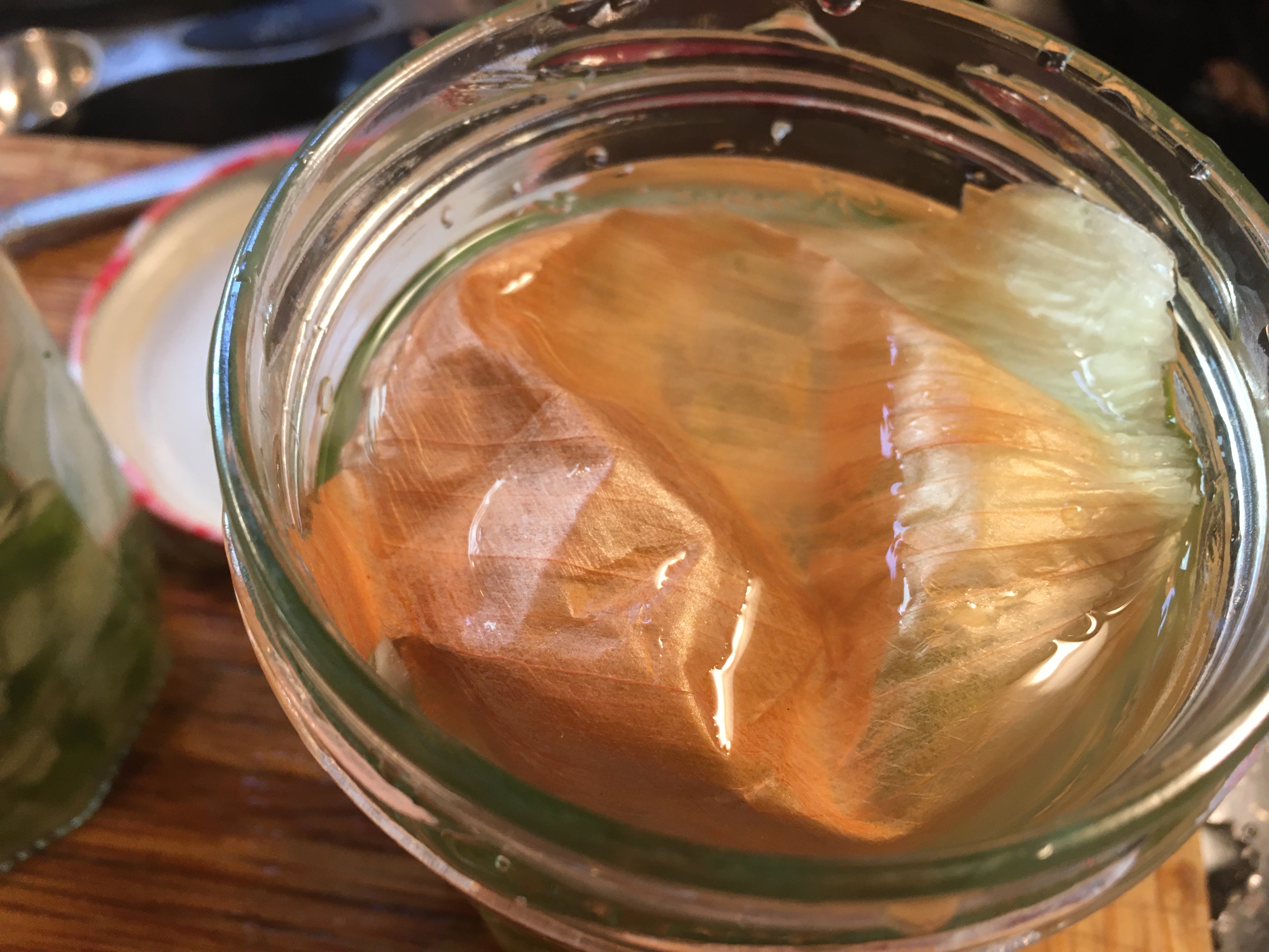 If you are new to fermented foods Nourishing Traditions has a good section on fermented foods. The first purpose of fermented foods is that it preserves fresh vegetables that would otherwise spoil. Unlike canning or pickling, good bacteria grow preserving the food and giving you the added health benefit of all those good little bugs in your digestive tract. Fermented foods that you make at home often contain a wider variety of good bacteria than store bought yogurt (which is where most of us are used to getting our dose of probiotics from) because the good bacteria that grow in your fermented food come from your hands, counter and life. Many fermented food recipes call for a starter culture or whey. Using these will provide you more consistent results, but you can also just use a salt water bath which is what I usually do. If you are fermenting fruits, using a starter culture of some sort can be helpful to getting a good end product. If you don’t want to buy one online, you can strain the whey from the yogurt in your fridge and put a tablespoon of that in with your salt water bath.