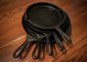 Pictured here you see a collection of cast iron some of which belonged to Maggie. At 100+ years old, these cast iron skillets are better than when Maggie bought them because that is one unique thing about cast iron cookware. If taken care of properly, they only get better with age.Cast iron is a durable and healthy choice for someone looking for non-stick cookware. Not only does it last FOREVER, but small amounts of iron leach into your food during the cooking process (especially with acidic dishes, i.e. tomato based dishes, etc.).  While iron is an important nutrient essential for everyone, it is especially important for women of childbearing age (especially those pregnant or nursing), babies and children, and those with a history of anemia. Iron gained through food is utilized much more appropriately by your body than iron taken by supplements.I love my cast iron. So far I have the following pieces….