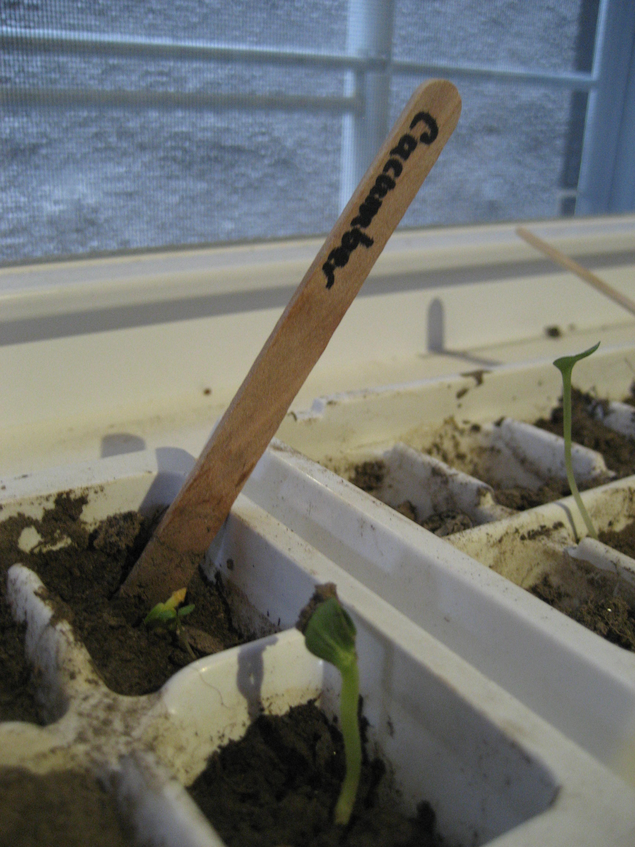 It’s even possible if you don’t have a backyard. Window boxes and containers on a stoop or balcony can yield more than you might think. And it can all be extremely inexpensive, especially if you start everything from seeds rather than buying established plants. We have tomatos, cucumbers, and peppers srpouting above the raditator on the window sill (I used the ice cube trays out of the freezer to start the seeds in). I’ll transplant them outdoors when they are big enough, but they could easily go into a container as well.
