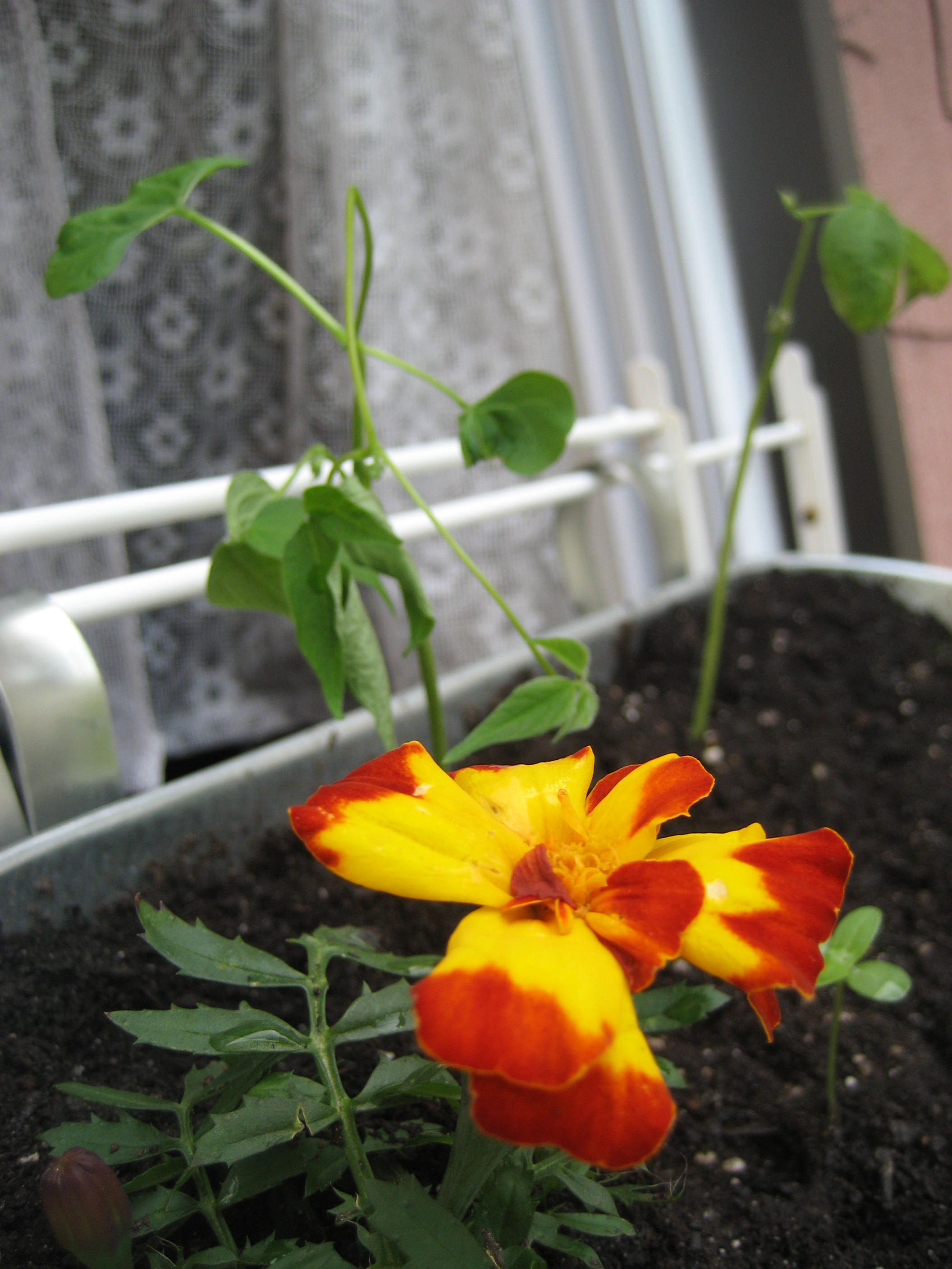 Well, our outdoor garden plot in the backyard didn’t last long. I found it too stessful trying to keep little feet from stepping on plants. We’re trying window boxes this year. Here’s some pictures of our start.