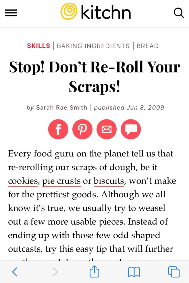 A clever idea from Food & Wine for baking your biscuits and not having to roll out and shape the scraps.