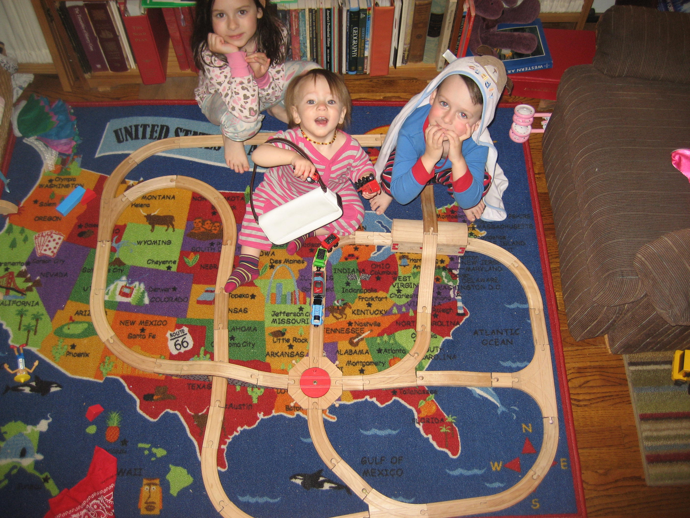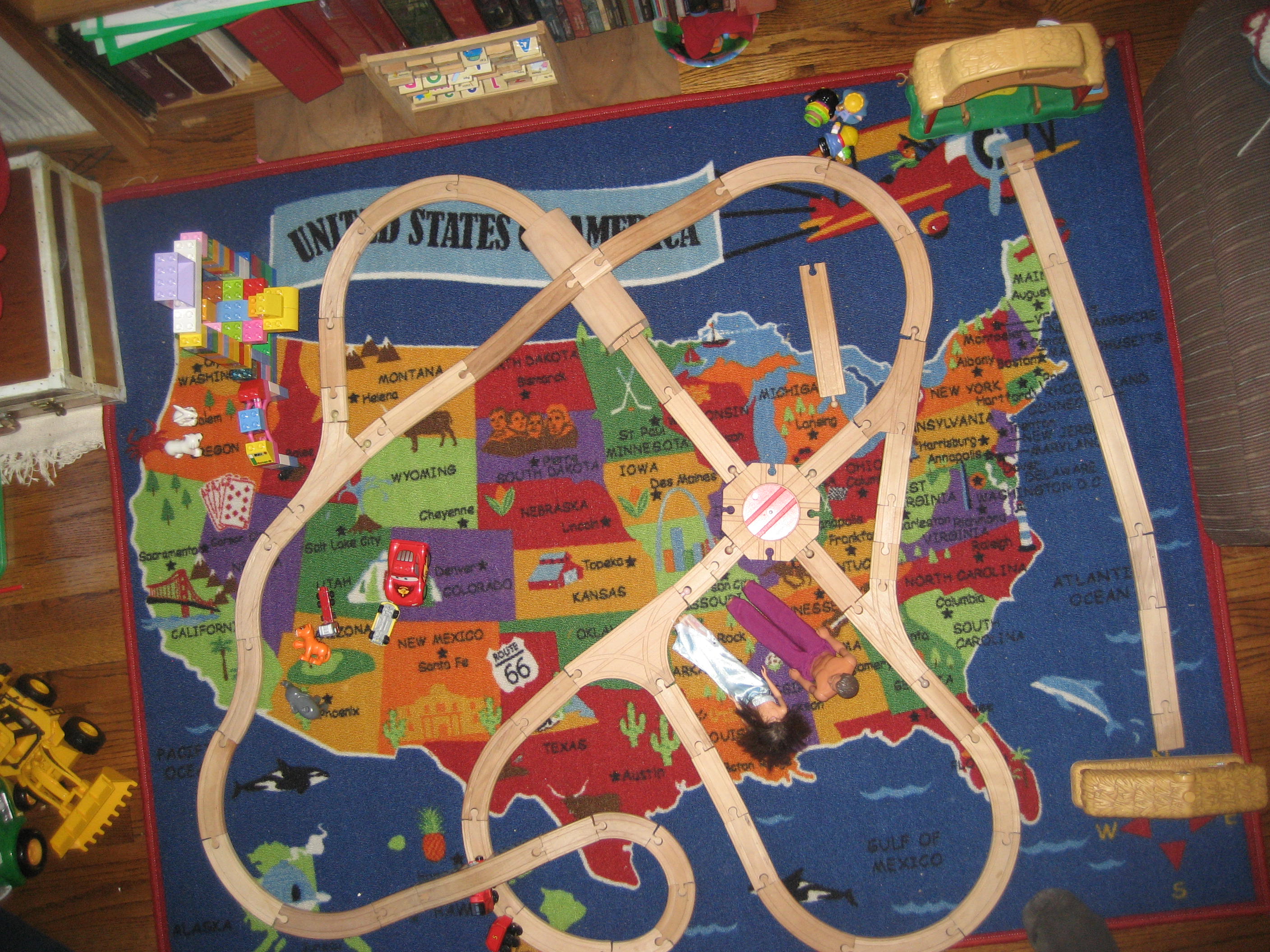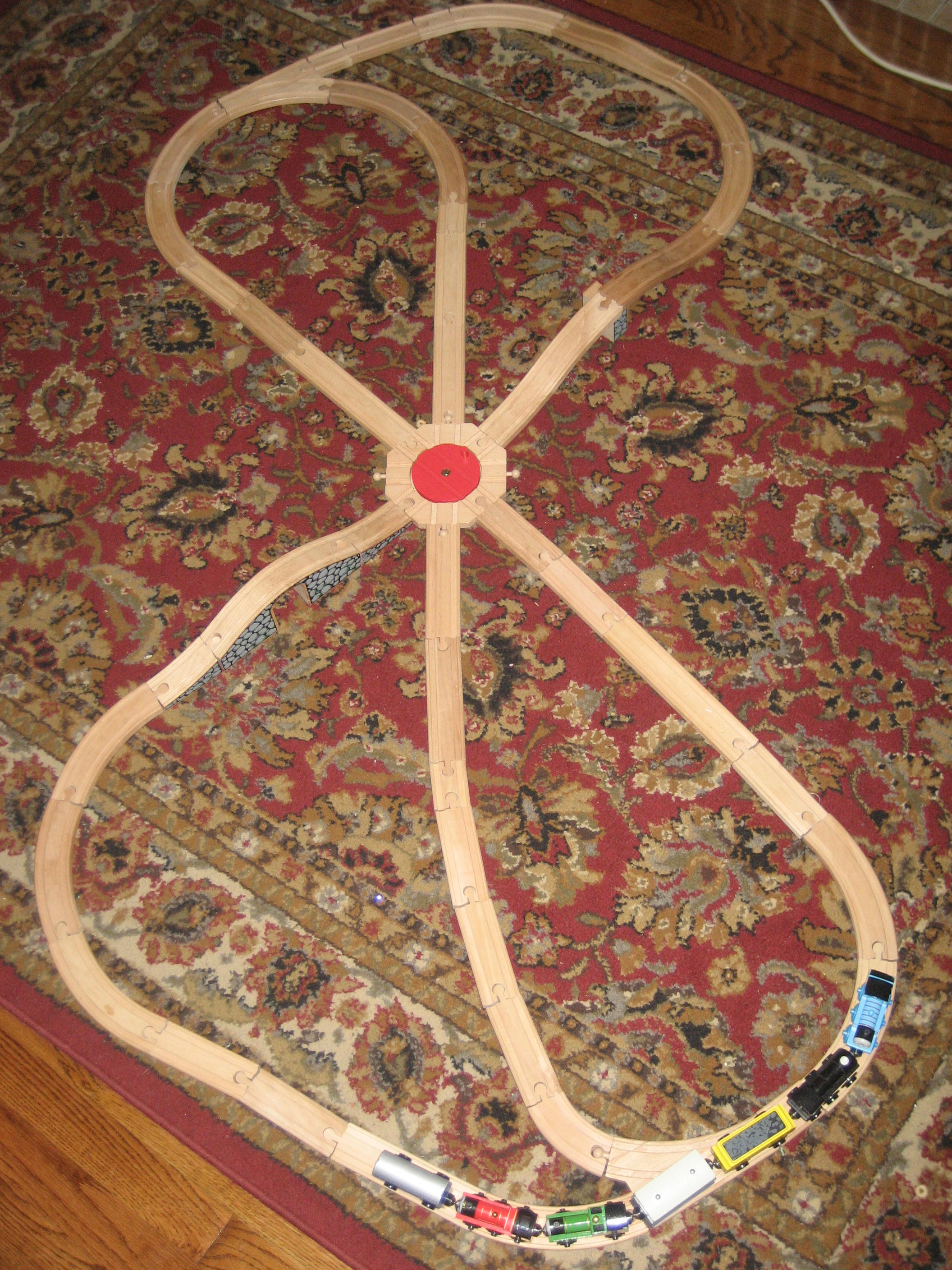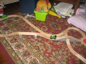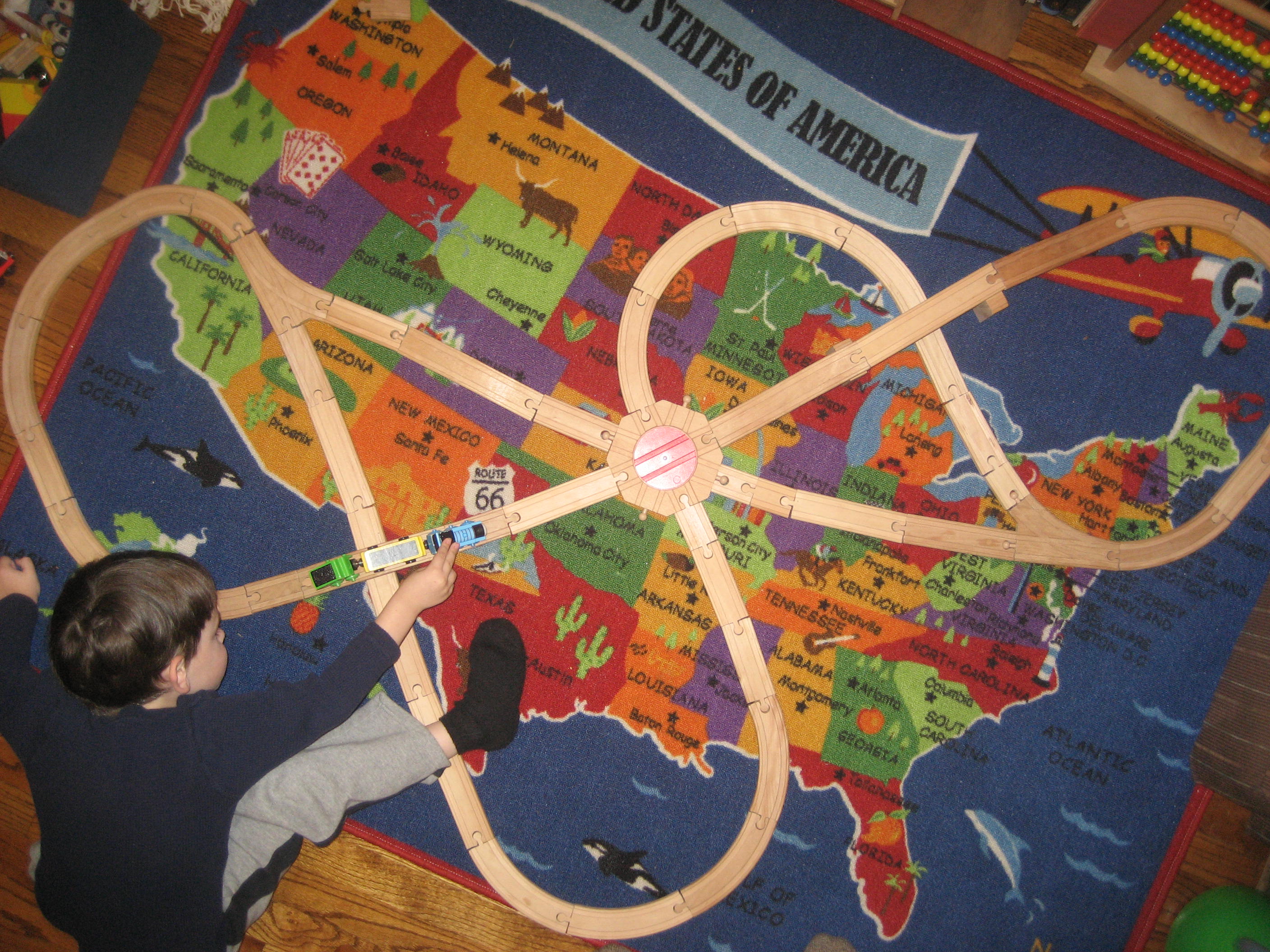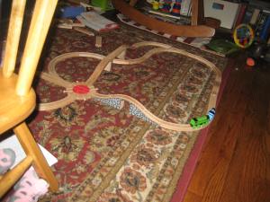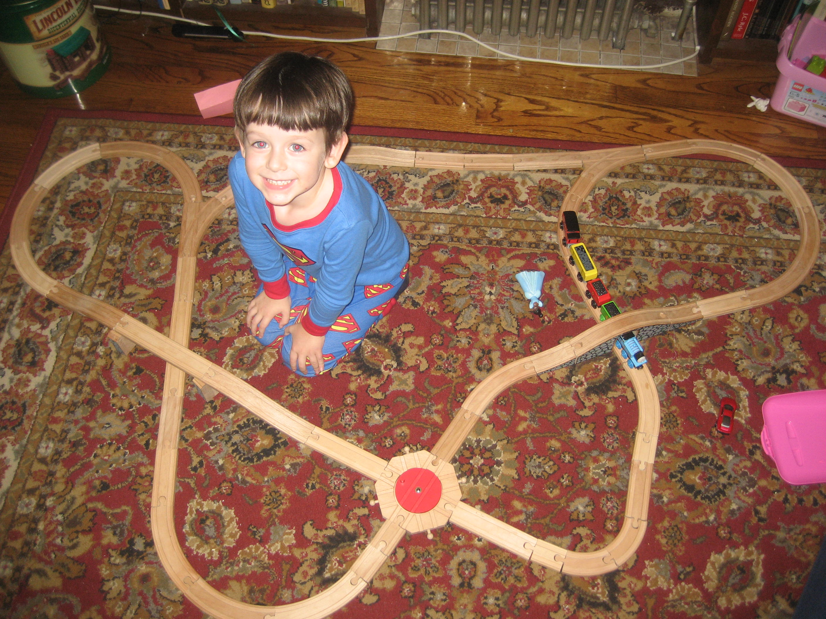 Daddy and Little Man both got train tracks for their birthdays. Here are the results. All their train track configurations for Thomas And Friends using the Imaginarium Train Set, Imaginarium Expansion Pack